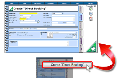 To add a new "Direct Booking" into PerformerTrack simply click on the Create "Direct Booking" button located at the top of the Booked Projects Overview Screen.