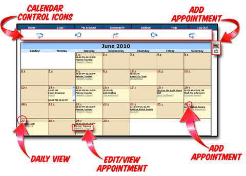To Edit/View Appointments within the Calendar simply click on the the Appointment Name in the Date Box.