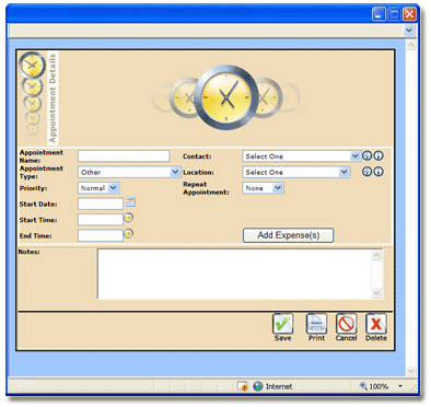 When you want to print the Appointment Details simply click the Print Button. Doing so will automatically Save any changes and will launch the Print Preview Screen.