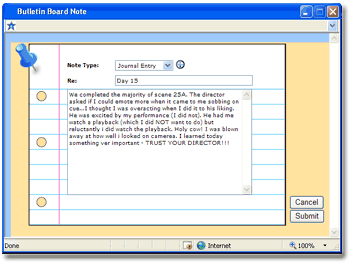 After you click the Submit button PerformerTrack automatically Date Stamps your Note and Journals it in the Contact's History! The Journaling feature is simply amazing! It allows you to see over time how you have interacted with Contacts and how they have been an influence on your career! |